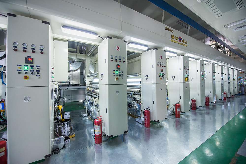 擁有齊全的先進的實驗室檢測設備(如美國安捷倫氣相色譜儀、紅外光譜儀等)、自動化高速單元式印刷機3臺、鋁箔(PVDC)印刷涂布機2臺、干式復合機2臺、環(huán)保型無溶劑復合機3臺、高性能多層共擠上下吹膜機4臺、流延擠出機1臺、薄碼噴涂檢品機5臺,分切機6臺、制袋機生產線25臺、鋰電池用鋁塑膜相關設備5臺。年設計生產能力1萬噸,年產值4.0億元。